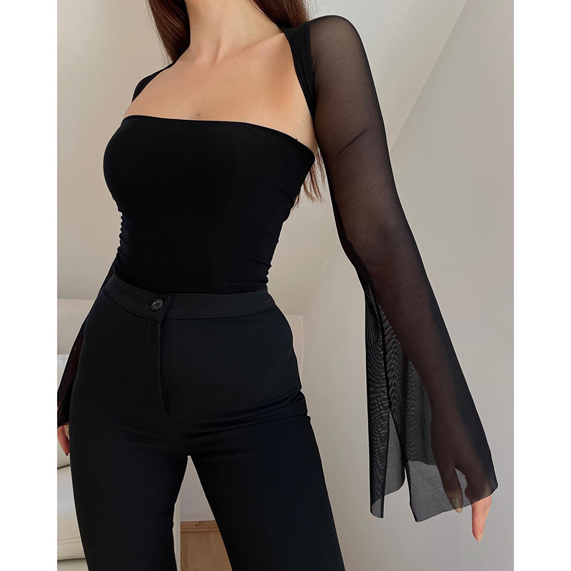 Tube Top Mesh Long Sleeve Waistcoat Sexy Slim Fit Slimming Casual Elegant Top