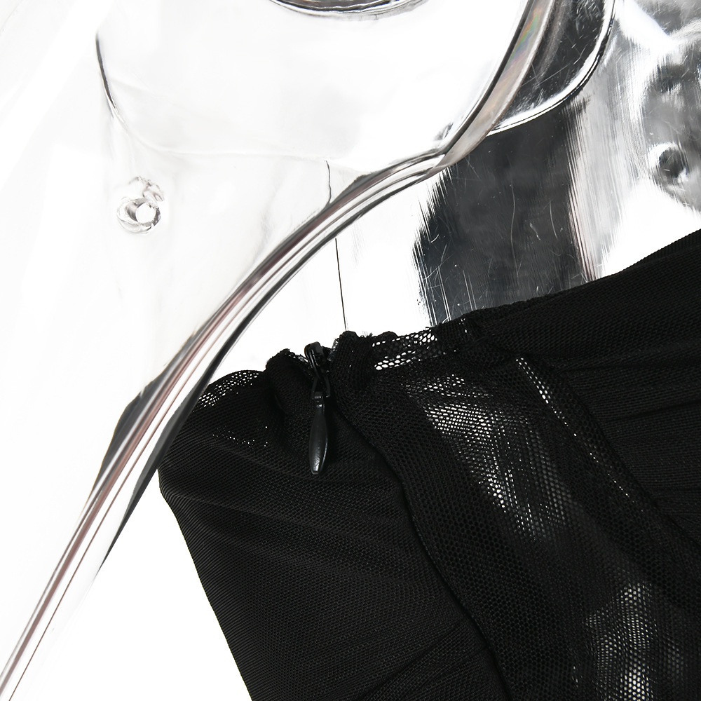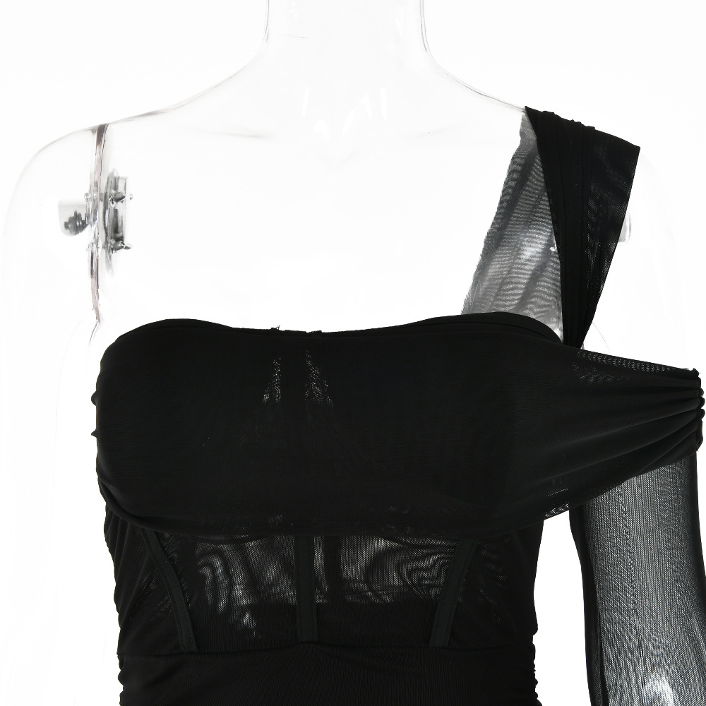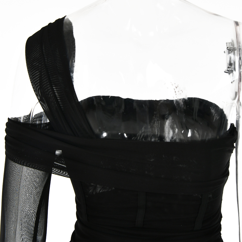 Voile See-through Backless Strap Dress for Women Spring Skinny Slimming Pleated Dress Opera Glove