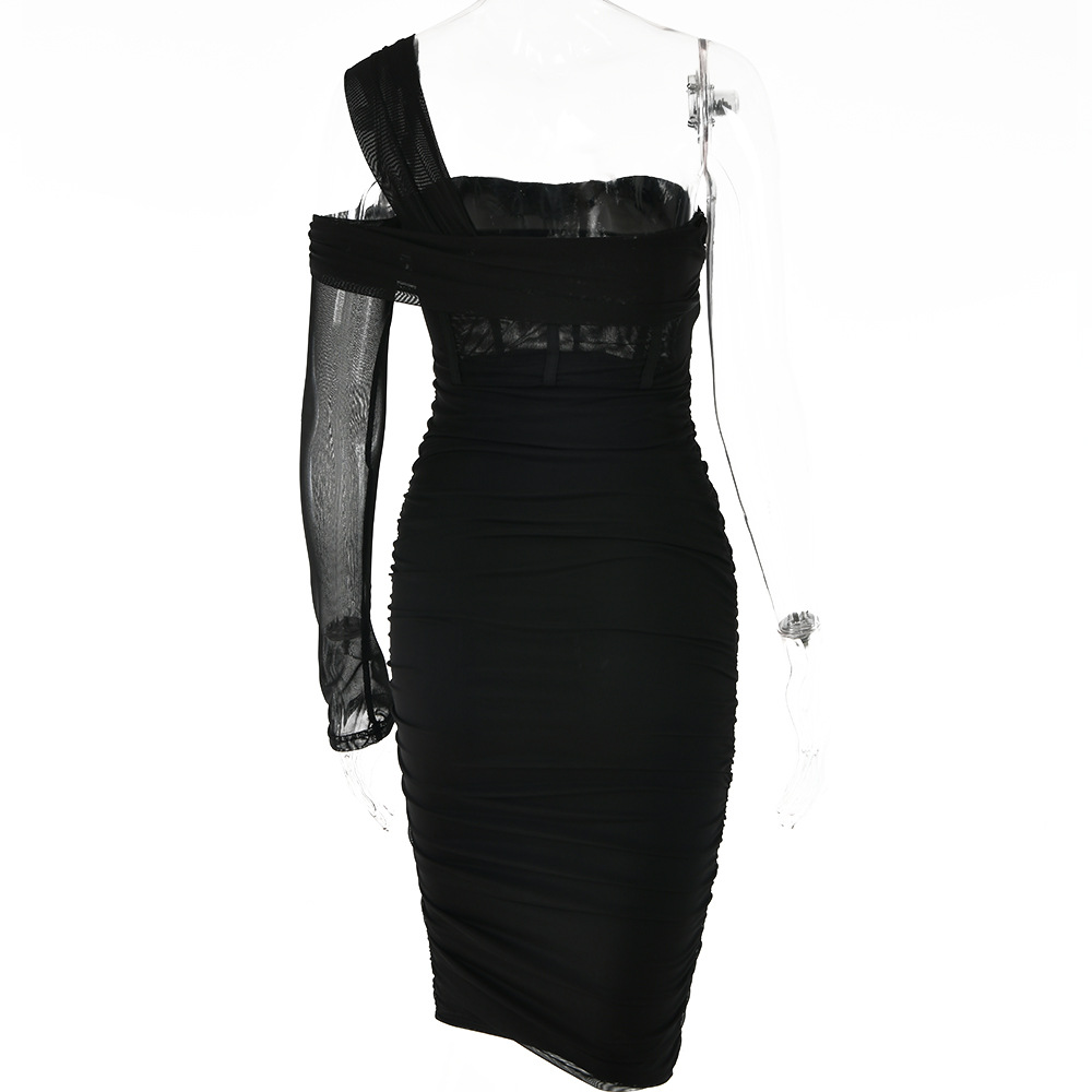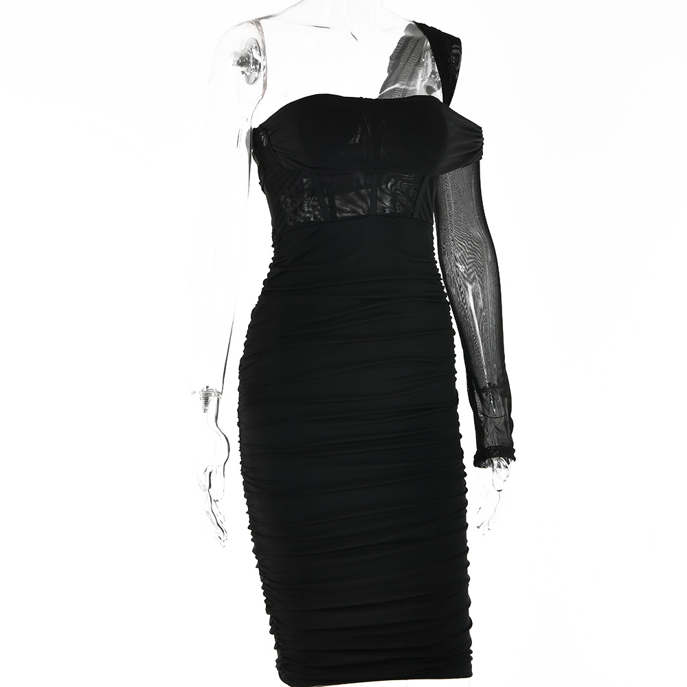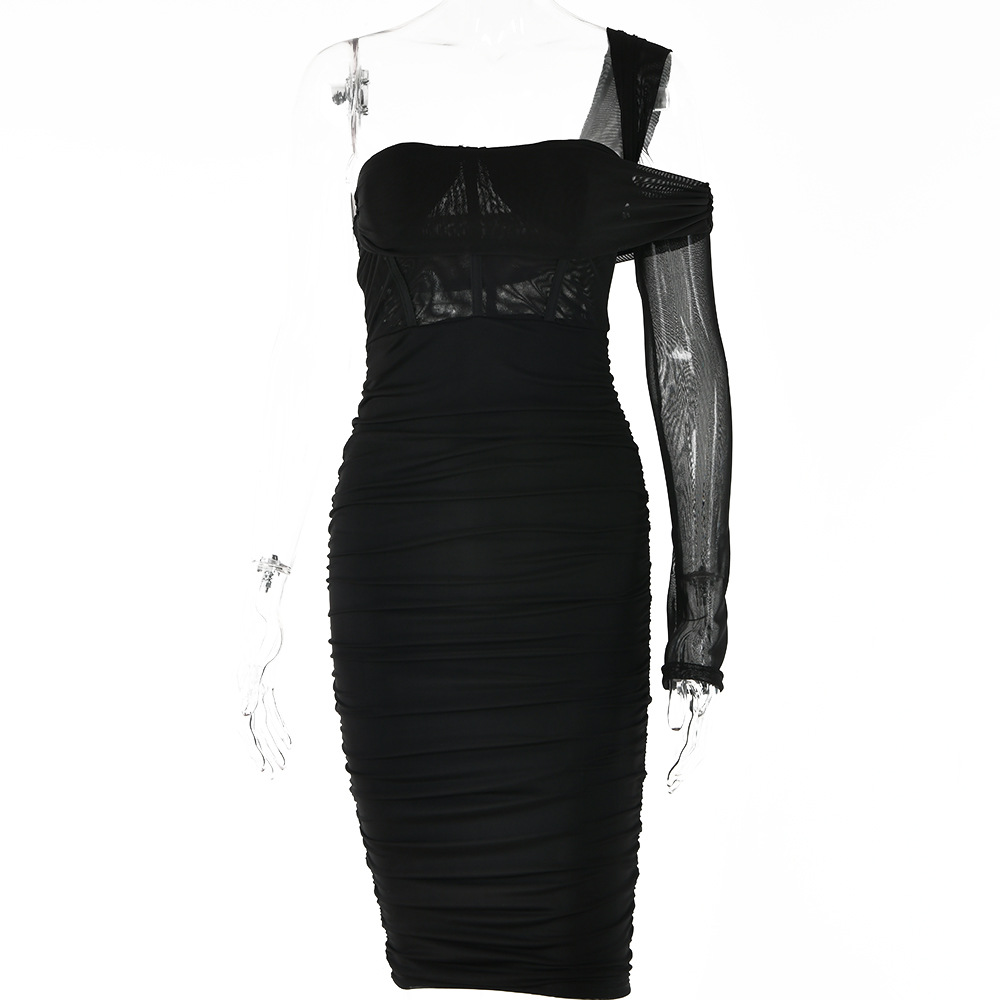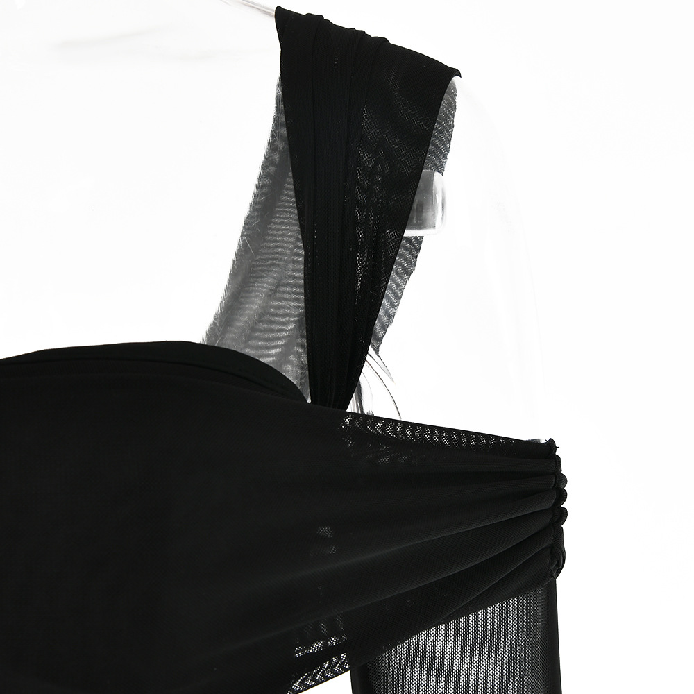 Voile See-through Backless Strap Dress for Women Spring Skinny Slimming Pleated Dress Opera Glove