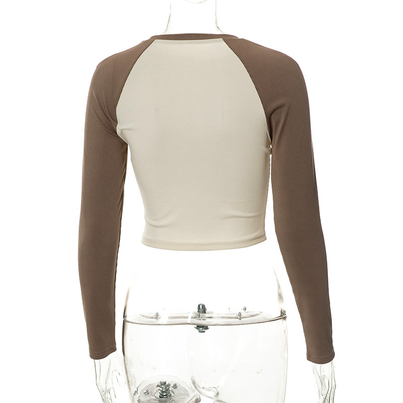 Women Autumn round Neck Pullover Long Sleeve Printed Cropped Casual Women Clothing Top