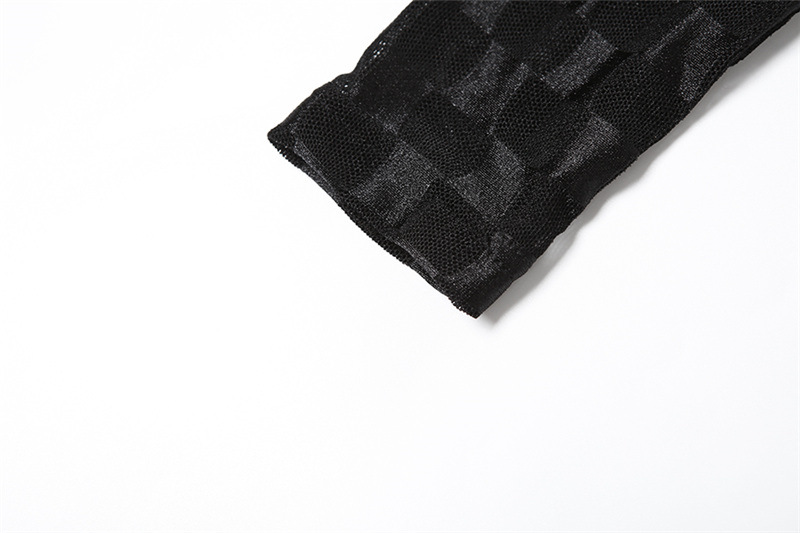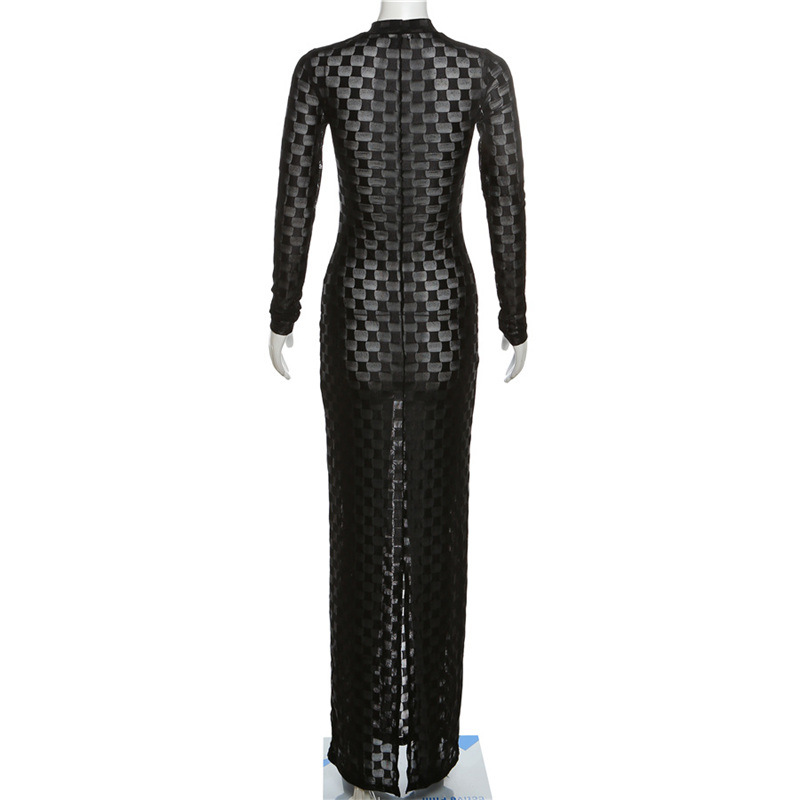Women Clothing Autumn Sexy See through Plaid Long Sleeve Slim Fit Pullover Slimming Dress