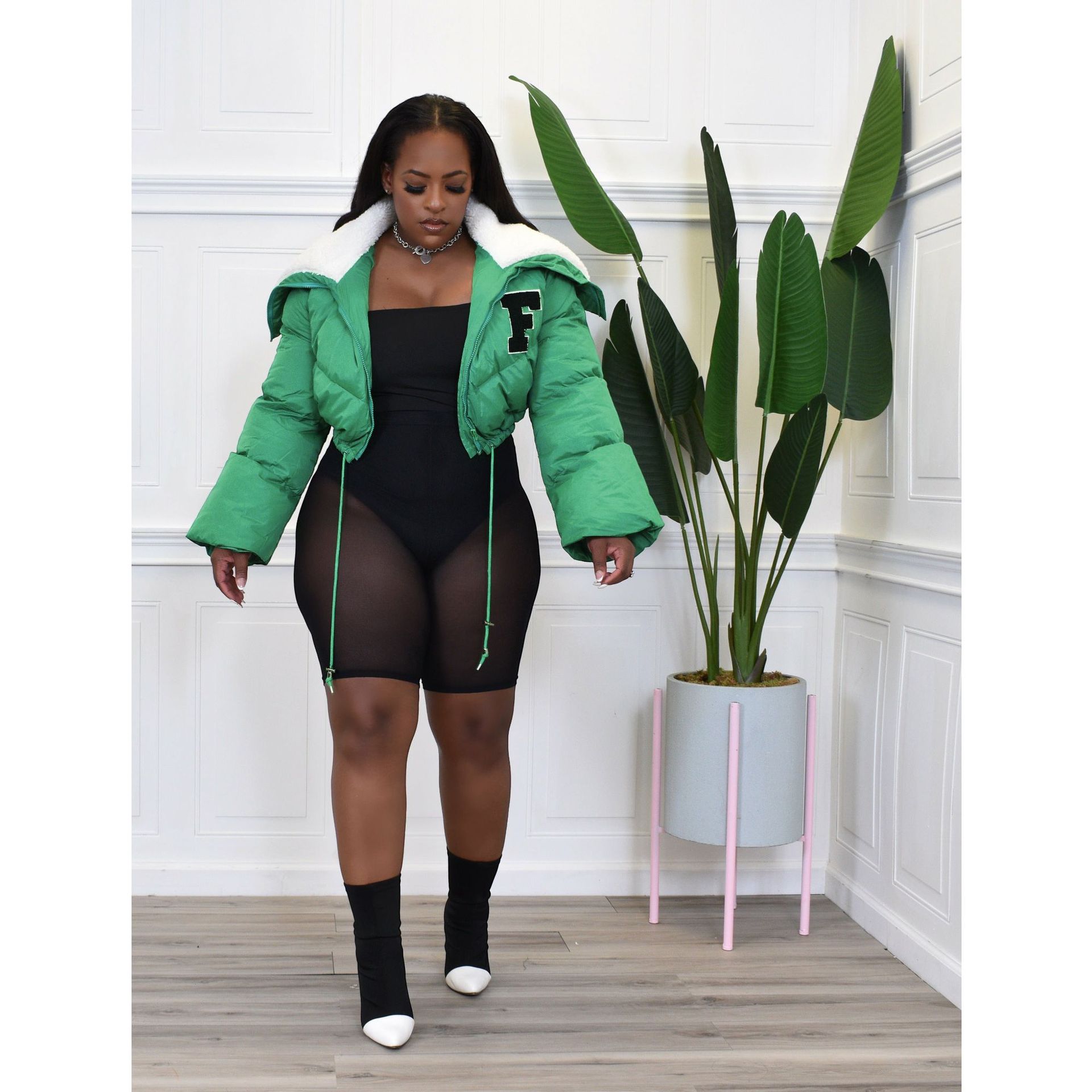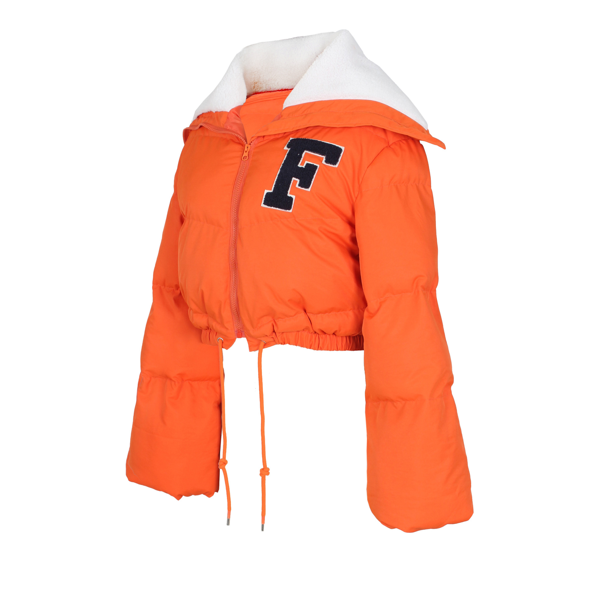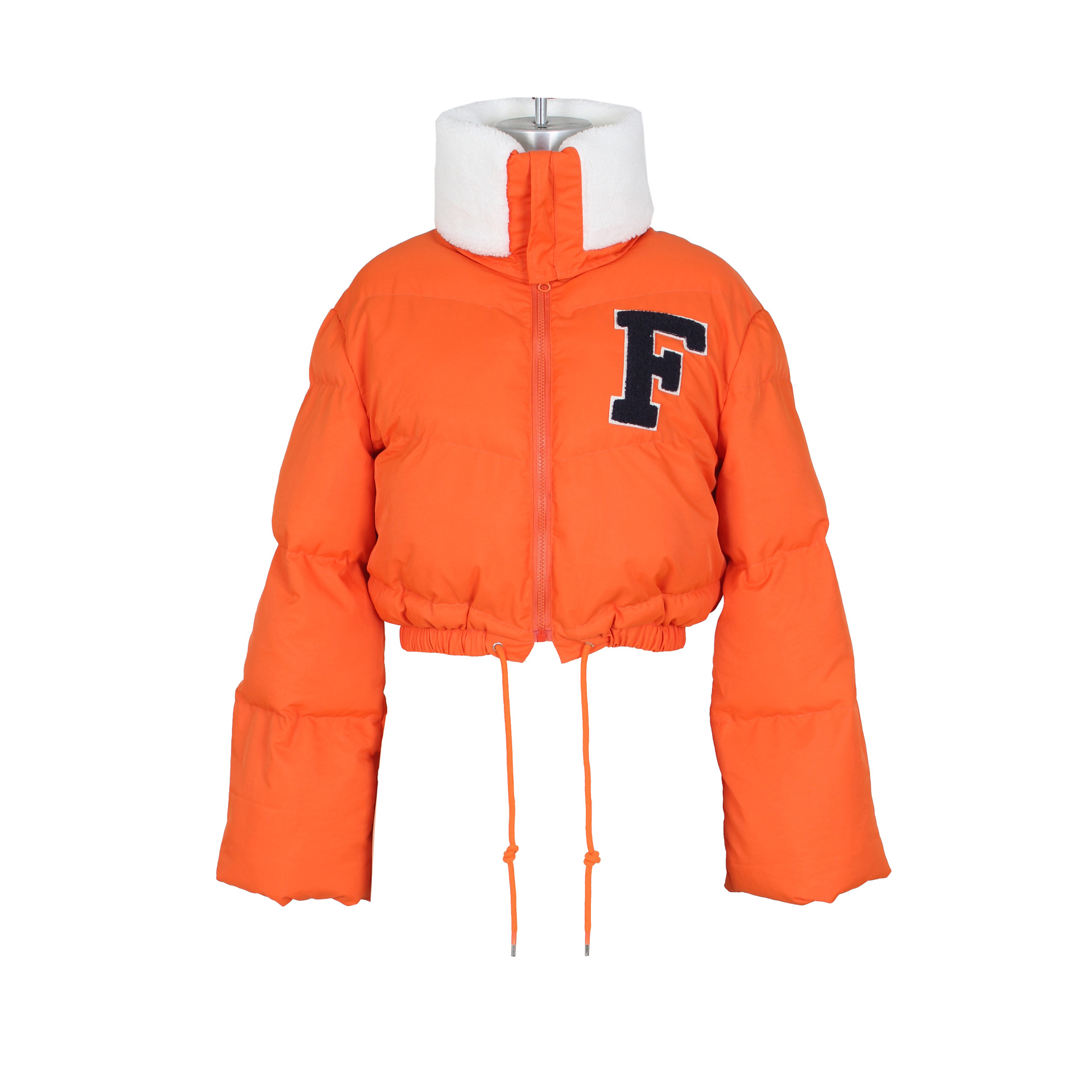 Women Clothing Autumn Winter Letter Graphic Embroidery North Cotton Padded Casual Polar Fleece Large Collared Jacket Coat