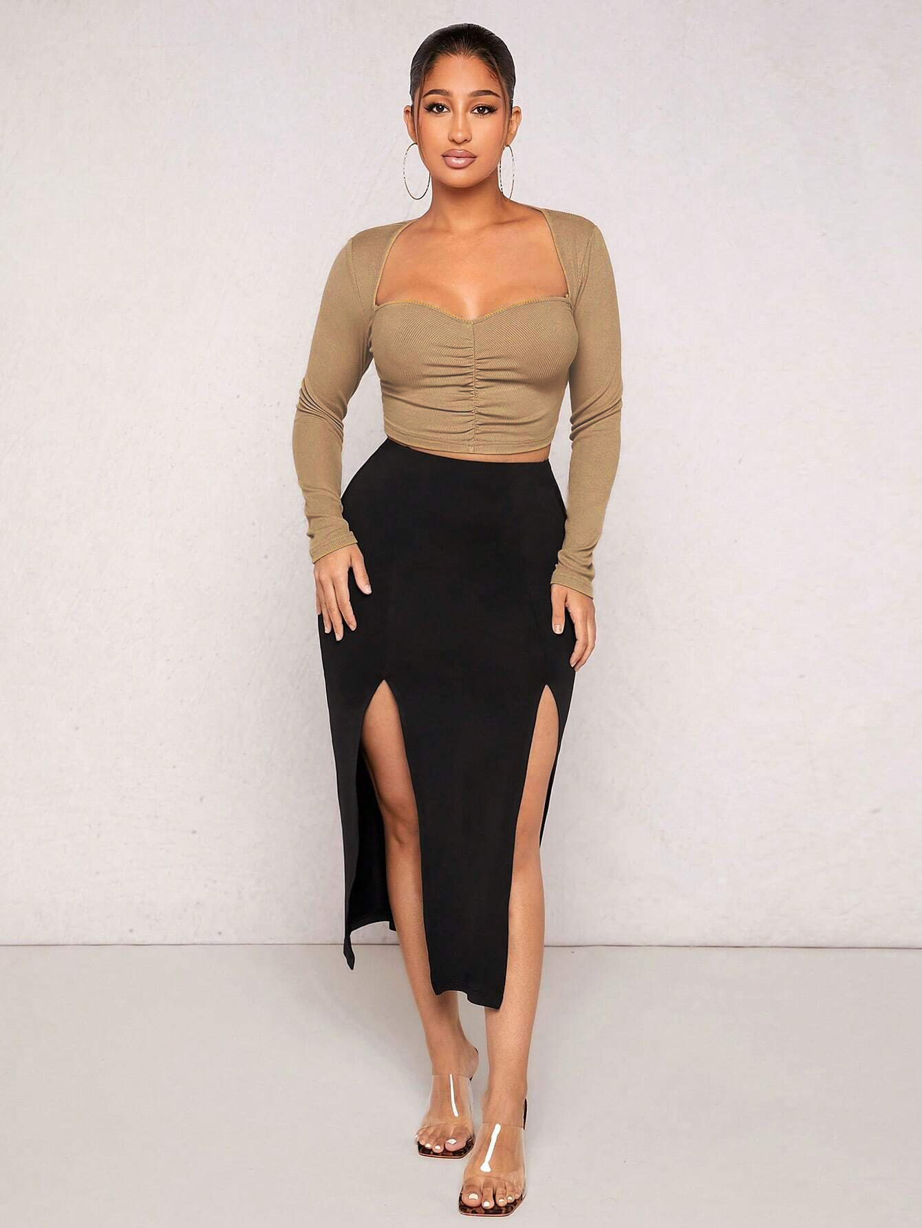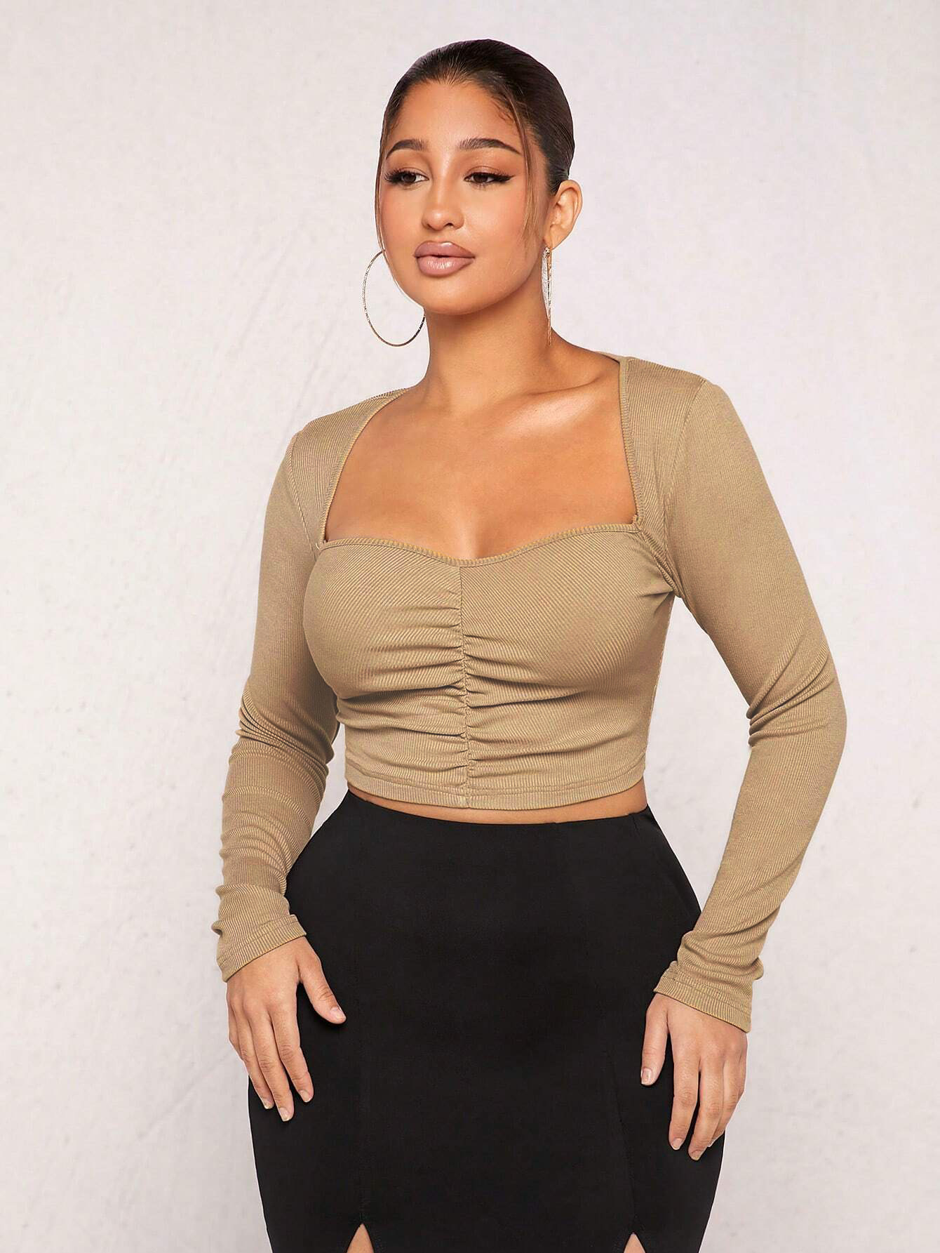 Women Clothing Autumn Winter Slim Short Solid Color Sexy Long Sleeve T shirt Tank Top
