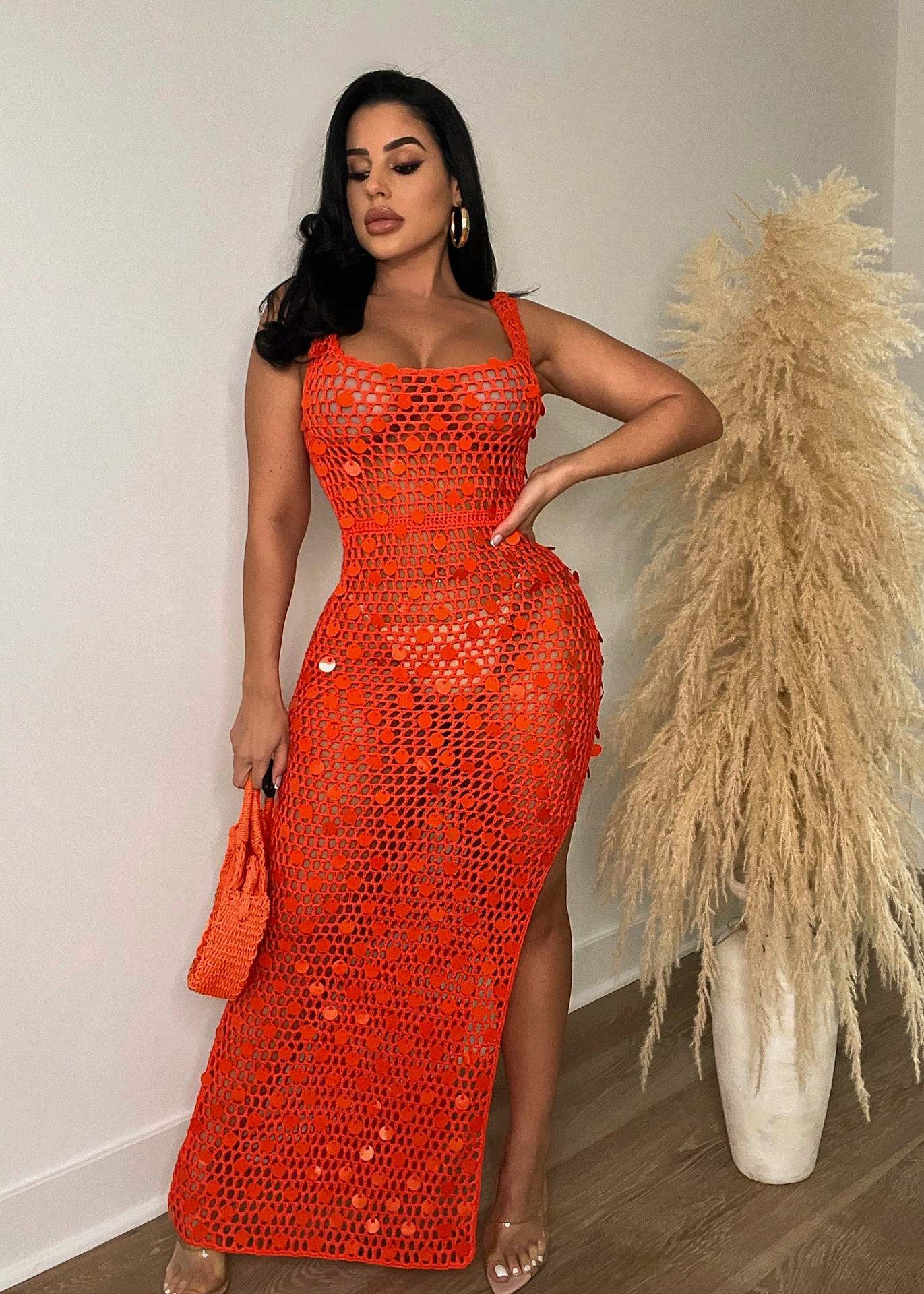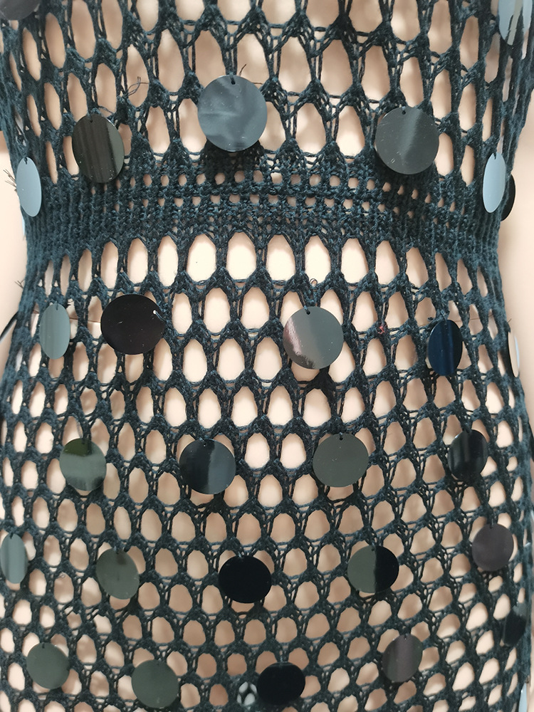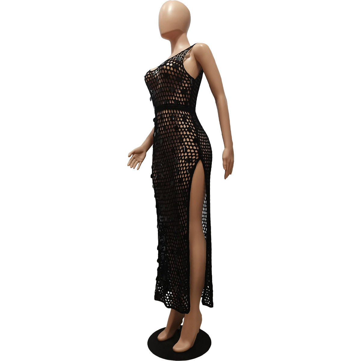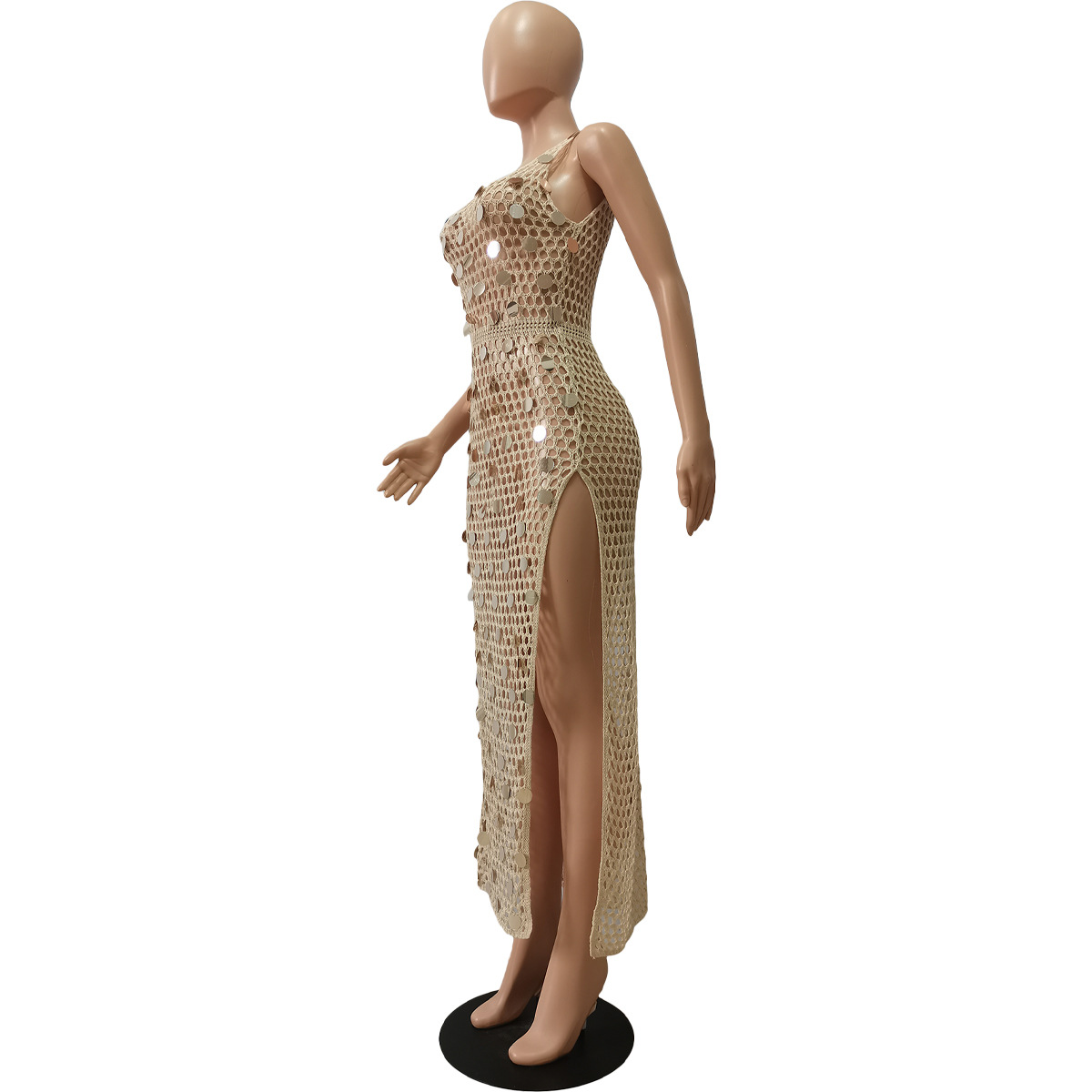 Women Clothing Handmade Knit Casual Hollow Out Cutout Sequin Vest Split Beach