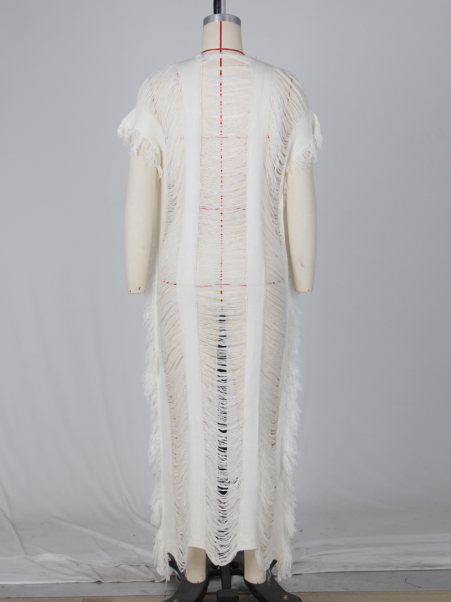 Women Clothing Hollowed Out Cardigan Tassel Autumn Winter Knitted Jacket