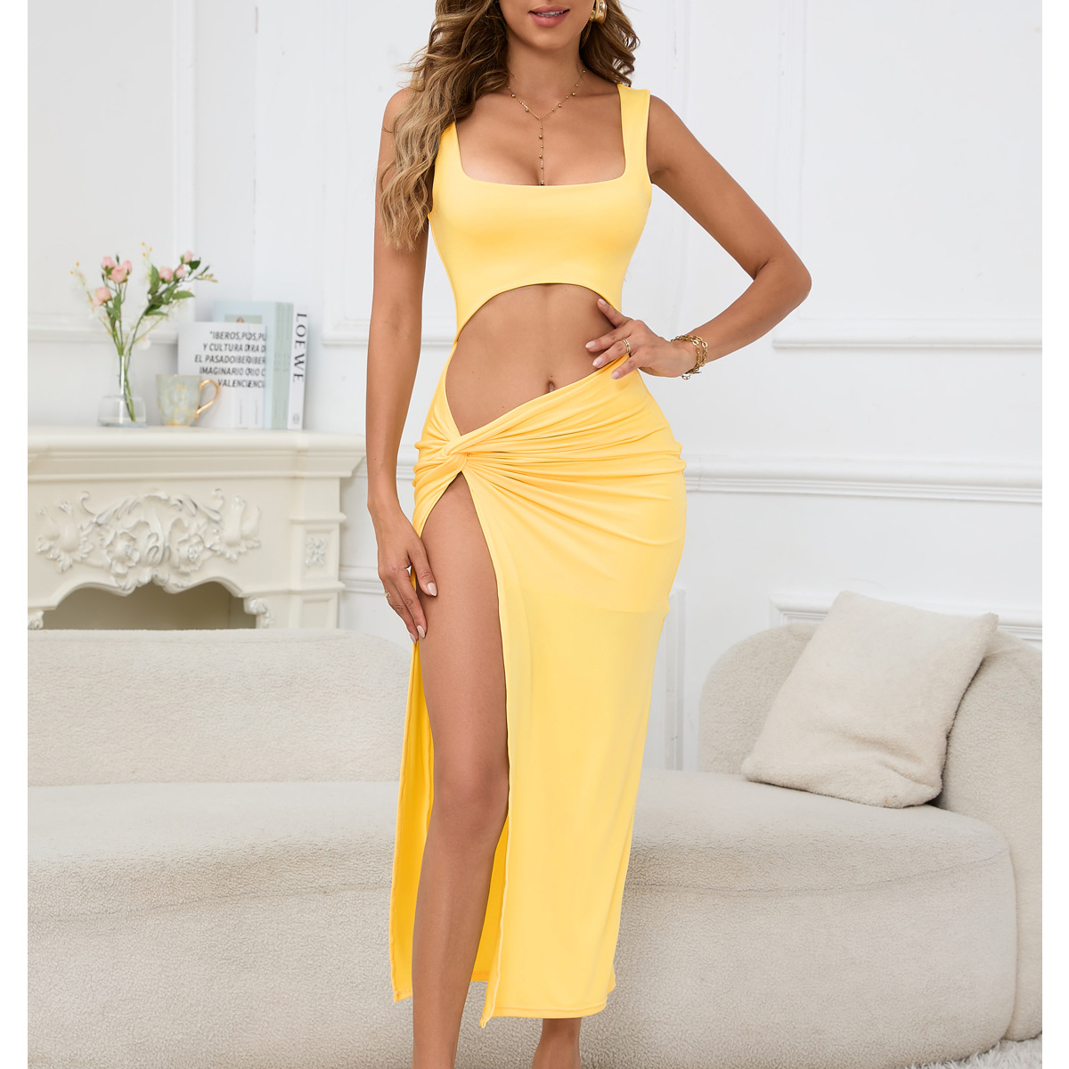 Women Clothing Maxi Dress Suspender Solid Color Hollow Out Cutout Out Cropped Sexy Dress