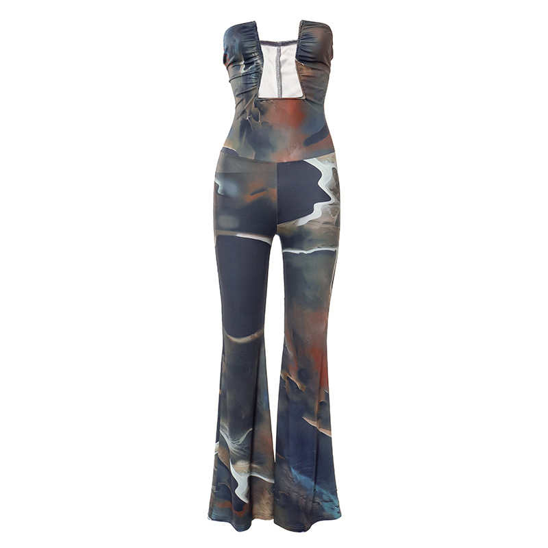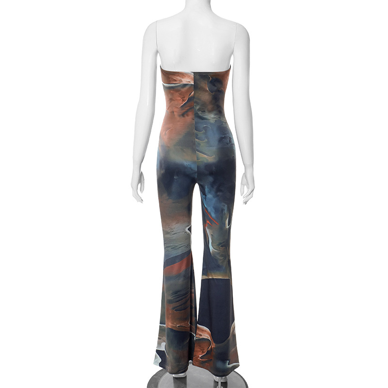 Women Clothing Sexy Casual Printed Slim Fit Hip Raise Jumpsuit