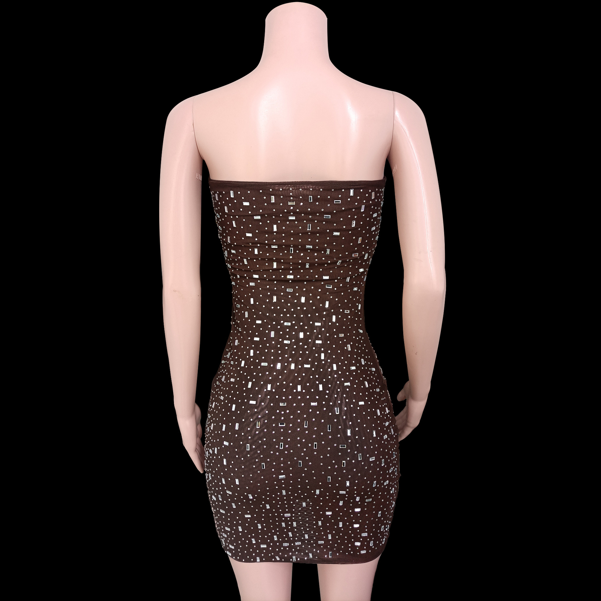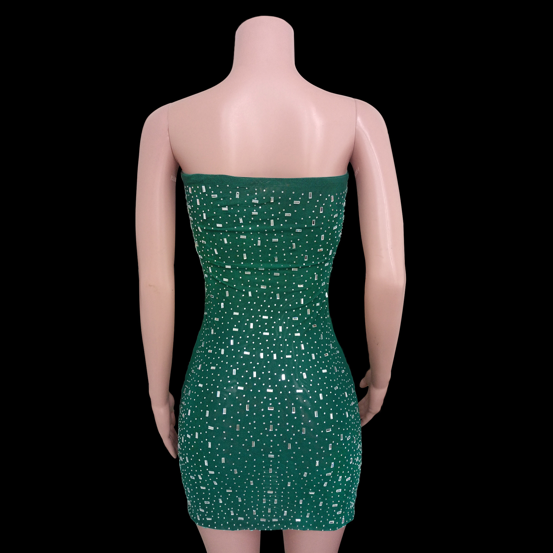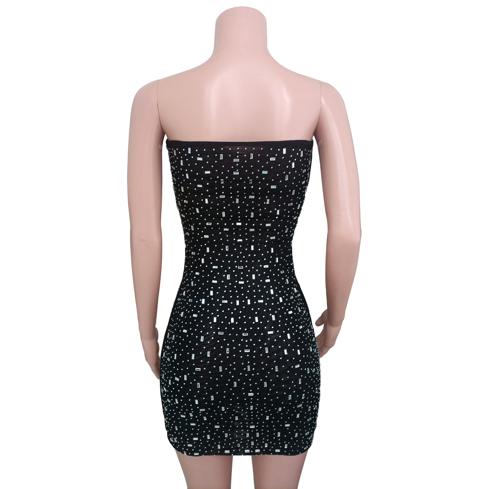 Women Clothing Sexy Rhinestone Double Layer Gauzy Package Hip Dress