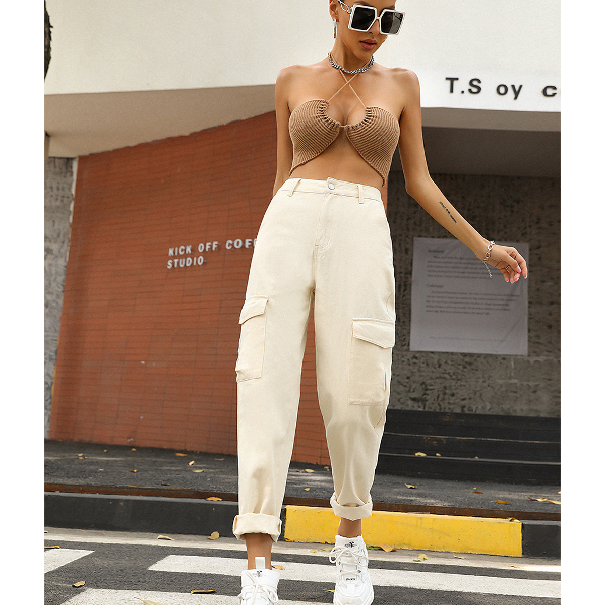 Women Clothing Solid Color High Waist Women Overalls Slimming Denim Pants