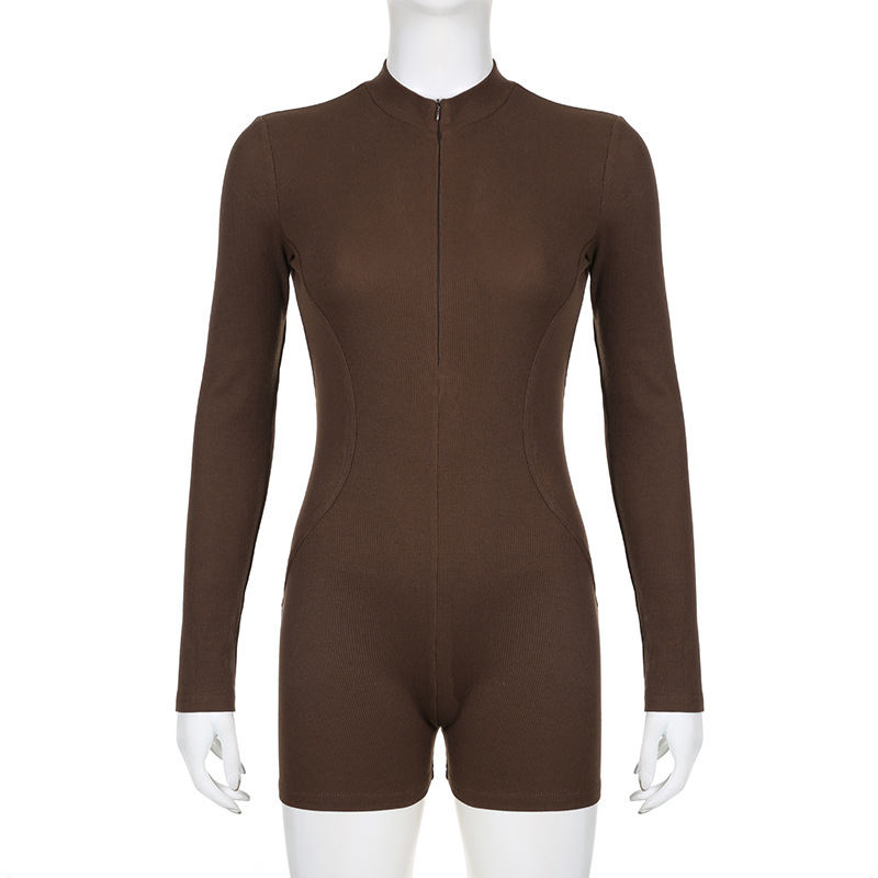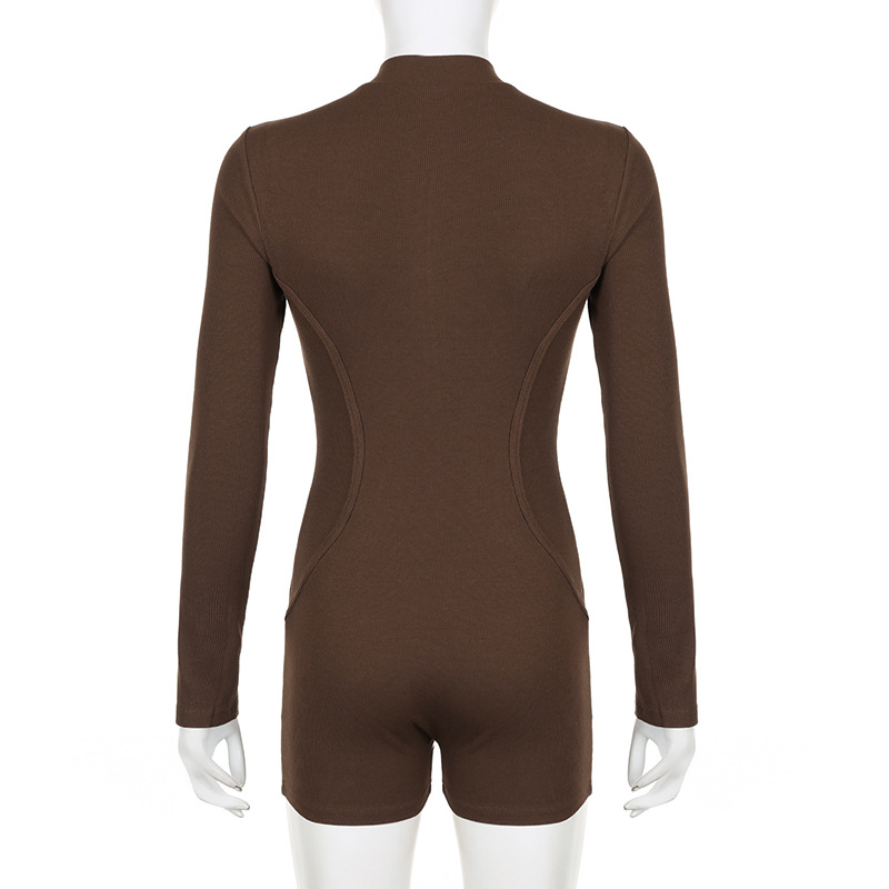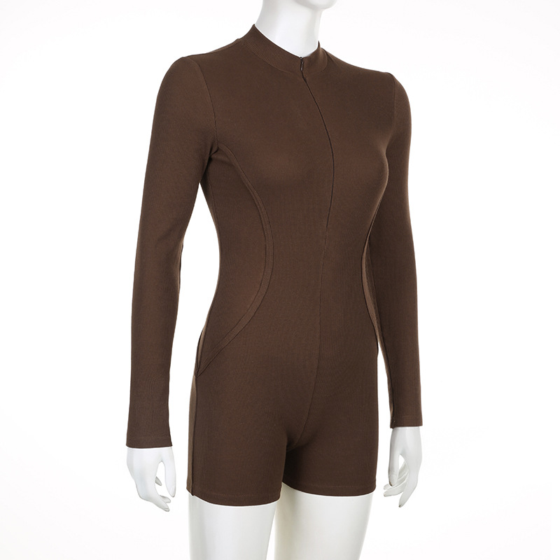 Women Clothing Solid Color Sexy Zipper Buckle Line Sense Bum Lift Shorts Sexy Sports Tight Jumpsuit
