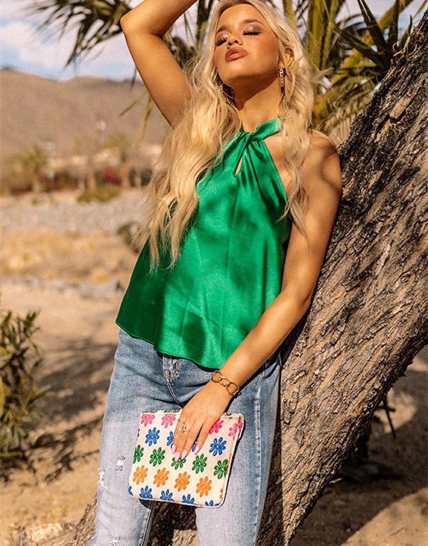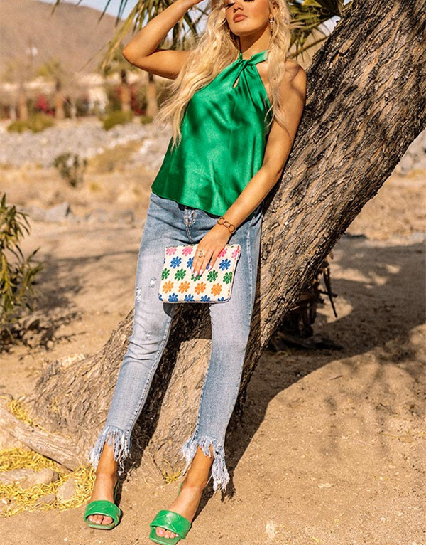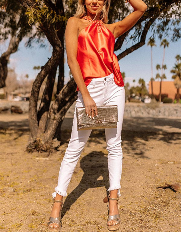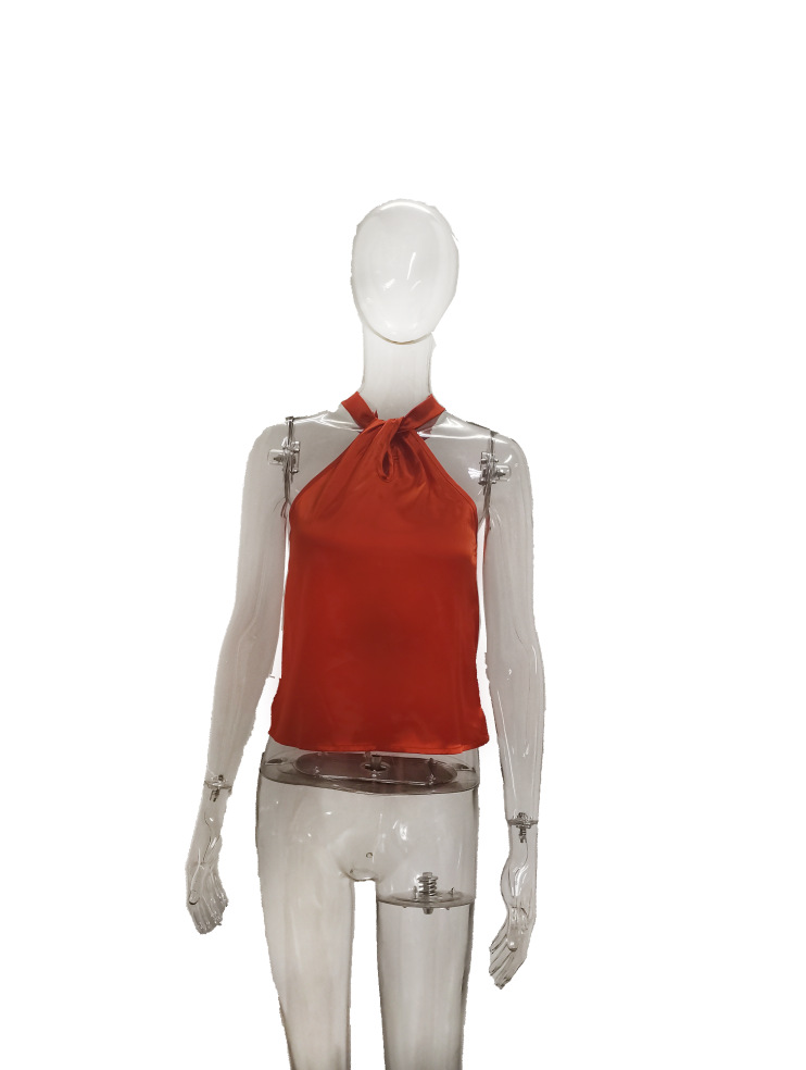 Women Clothing T-shirt New Slim Summer V-neck Sleeveless Satin T-shirt Women Top