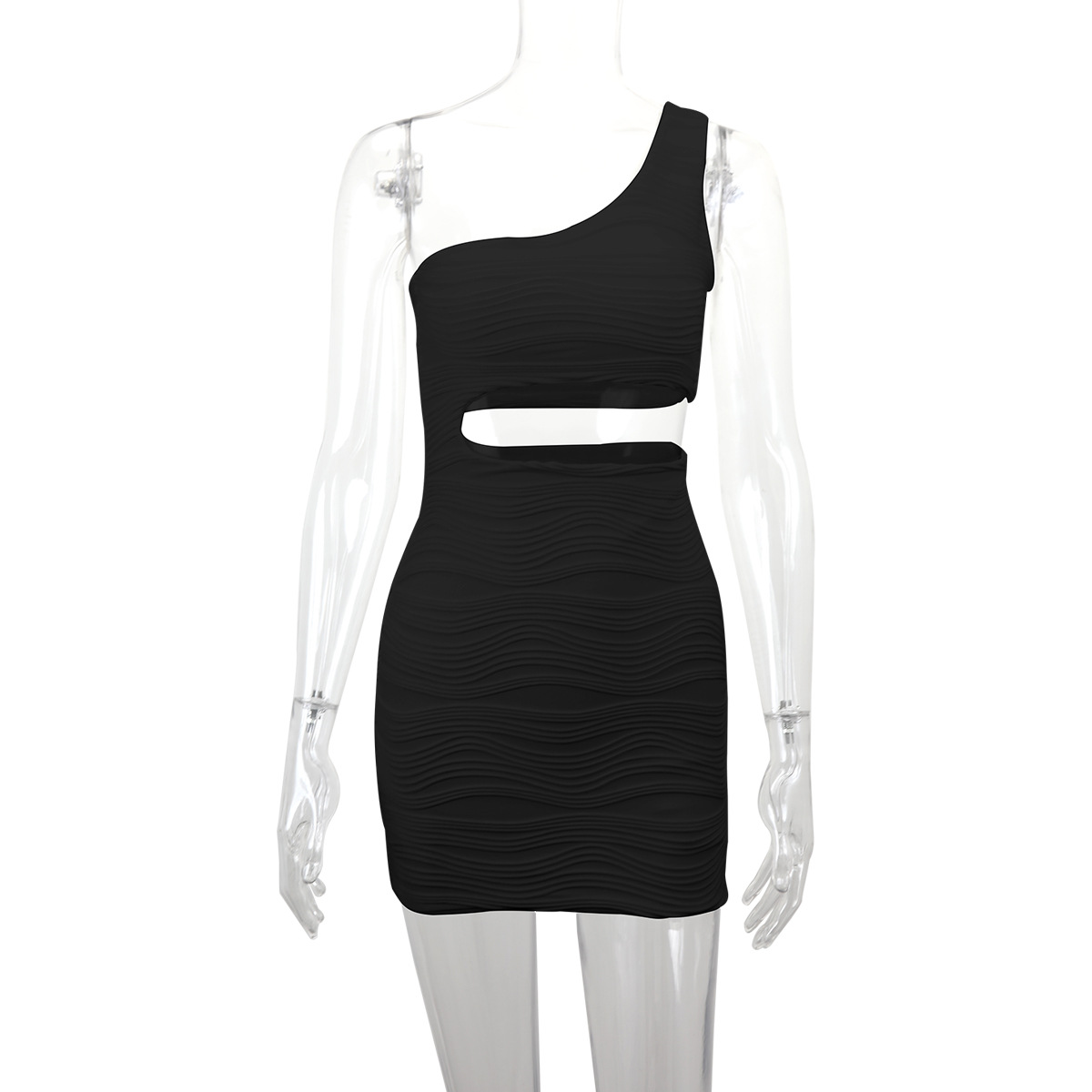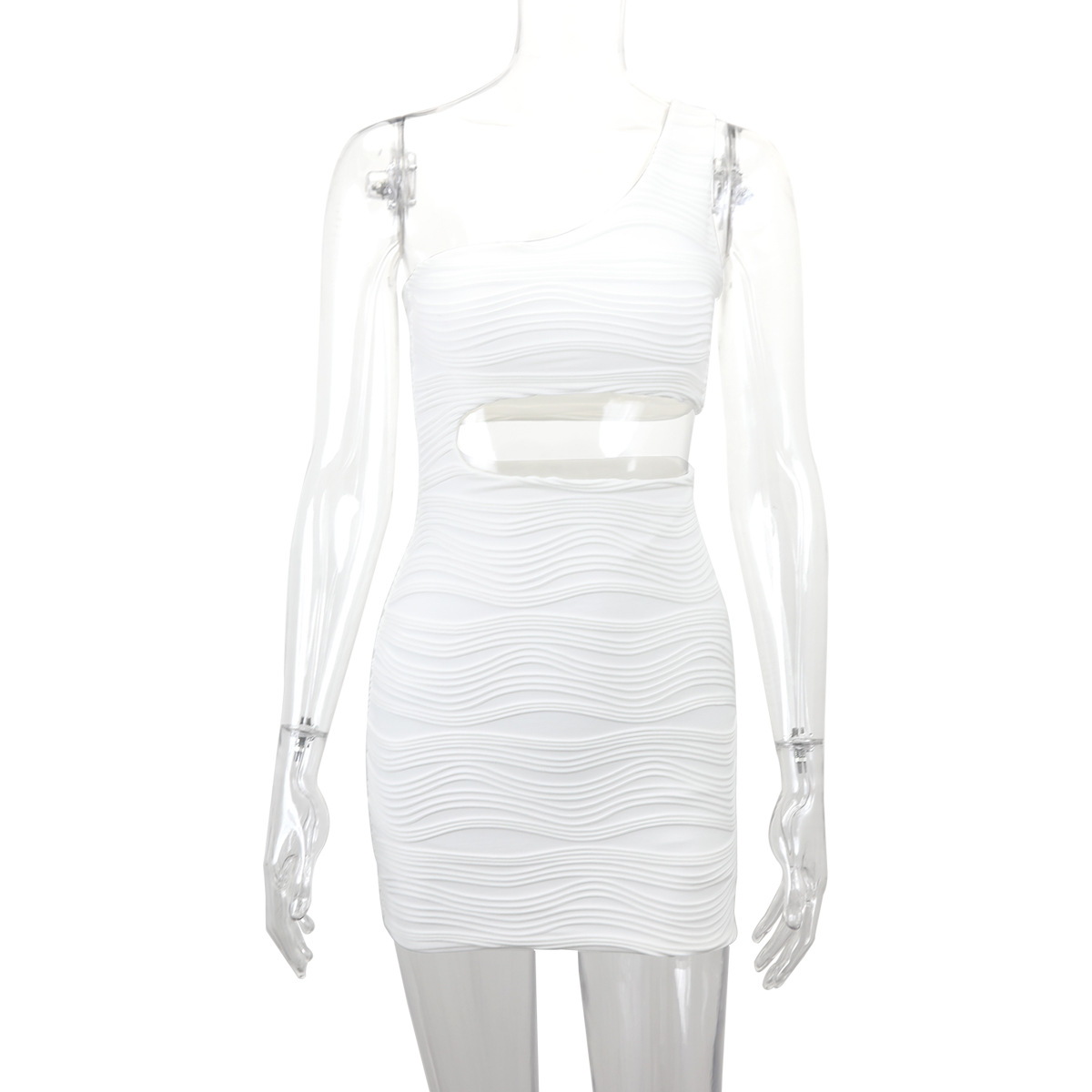 Women Clothing Water Ripple Shoulder Cropped Outfit Sexy Dress